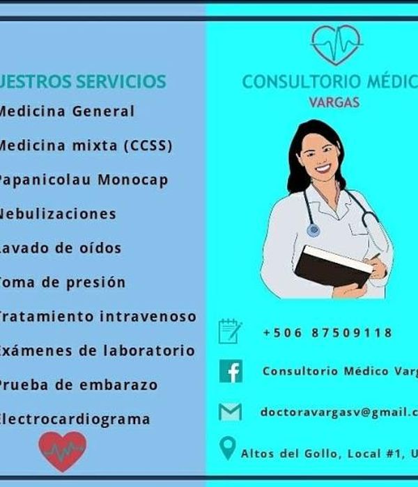 I was on a running trip in Costa Rica with my friends. I had a little accident: I slide on the rocks, fall, and cut my head. My friends took me to close-by doctor Consultanto Medico Vargas. She was very accommodating and agreed to see me without an appointment. She checked me and put stitches on my head. She was very lovely, gentle, and answered all my questions.