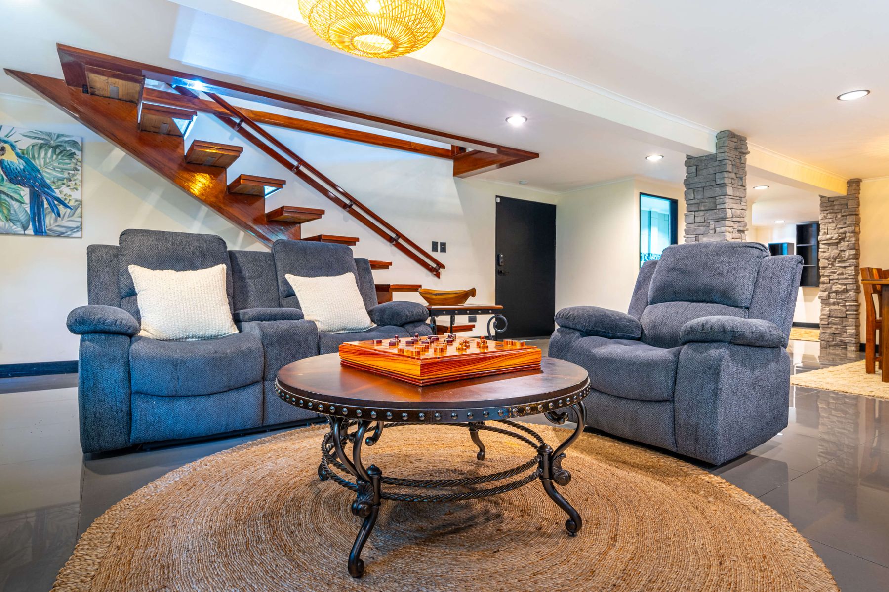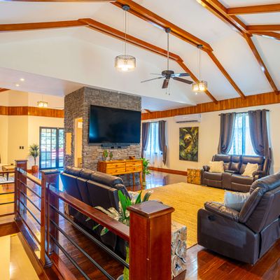 The home's location is a tranquil area near the town center. Surrounded by tropical gardens and close to Golfito Bay, it provides a peaceful retreat with amenities like pools and easy access to local beaches and nature trails, blending luxury with the region’s natural beauty.