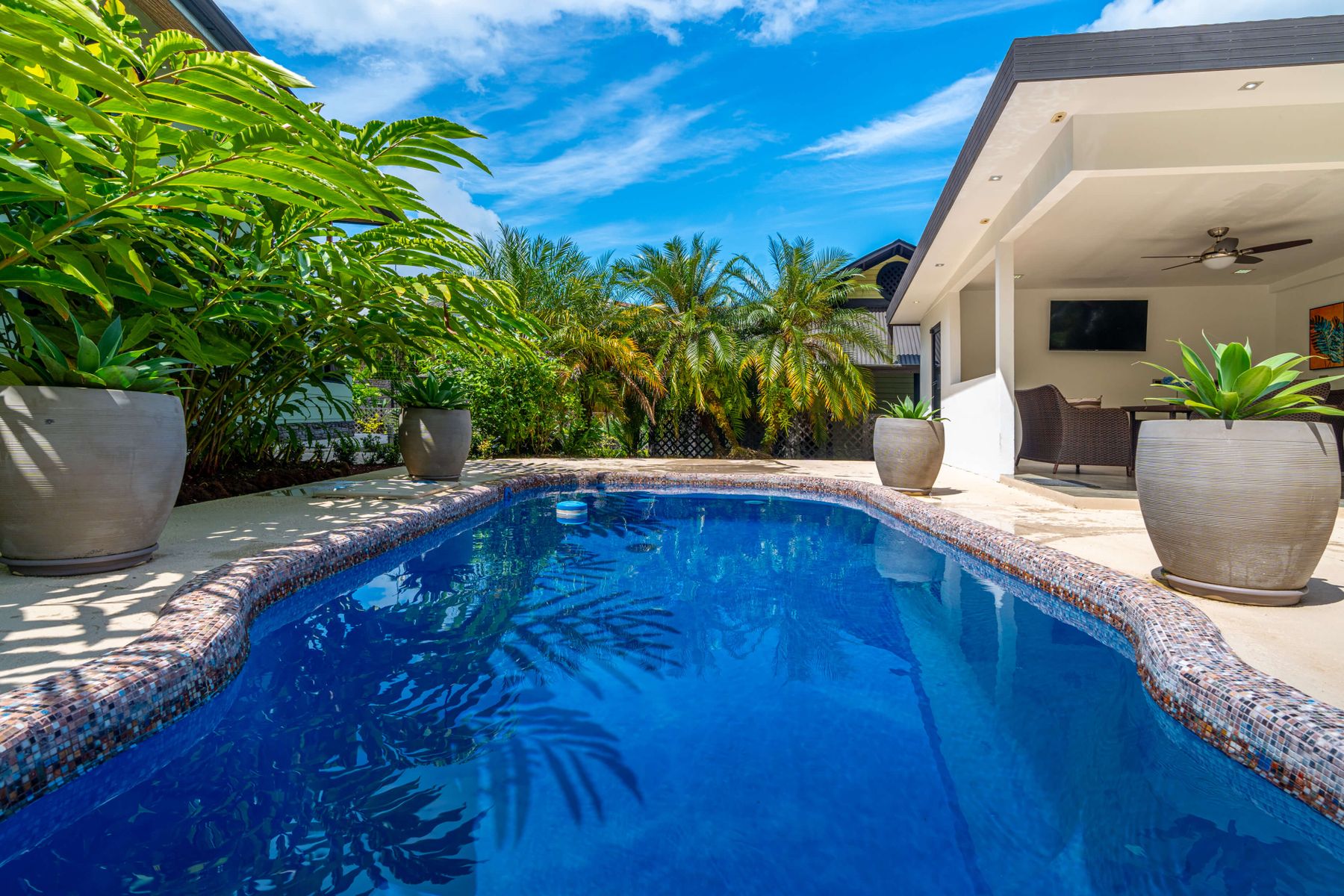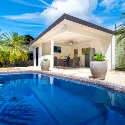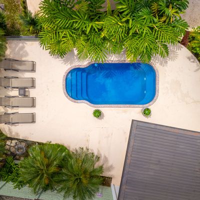 Relax by the private pool or stroll to nearby restaurants.