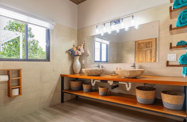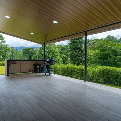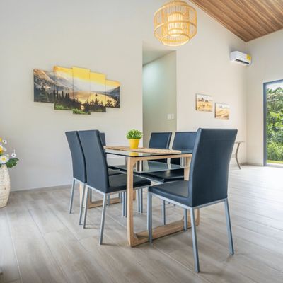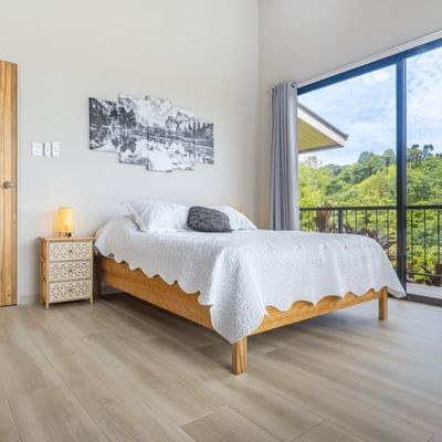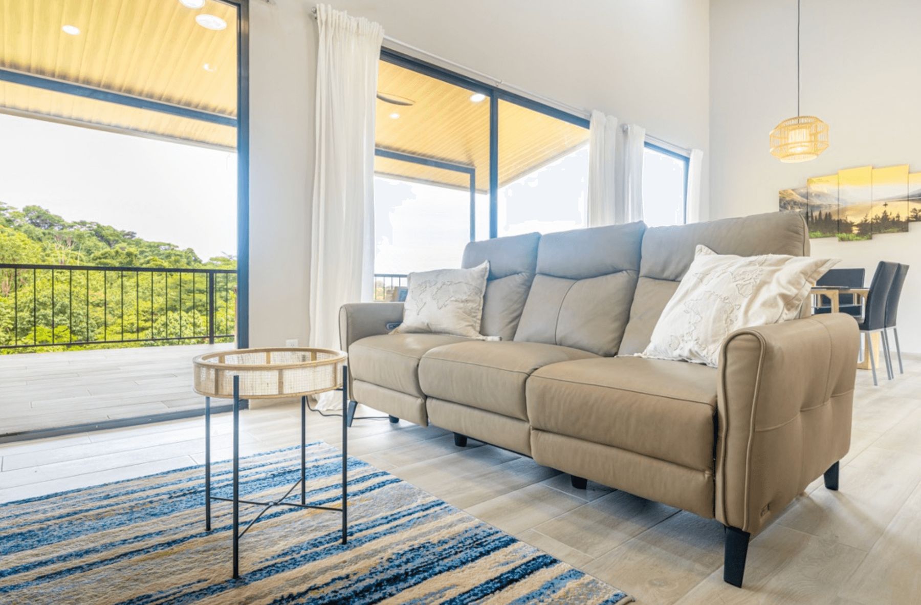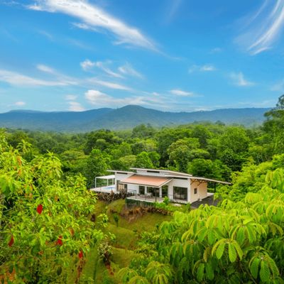 Floor-to-ceiling windows invite jungle breezes and stunning views