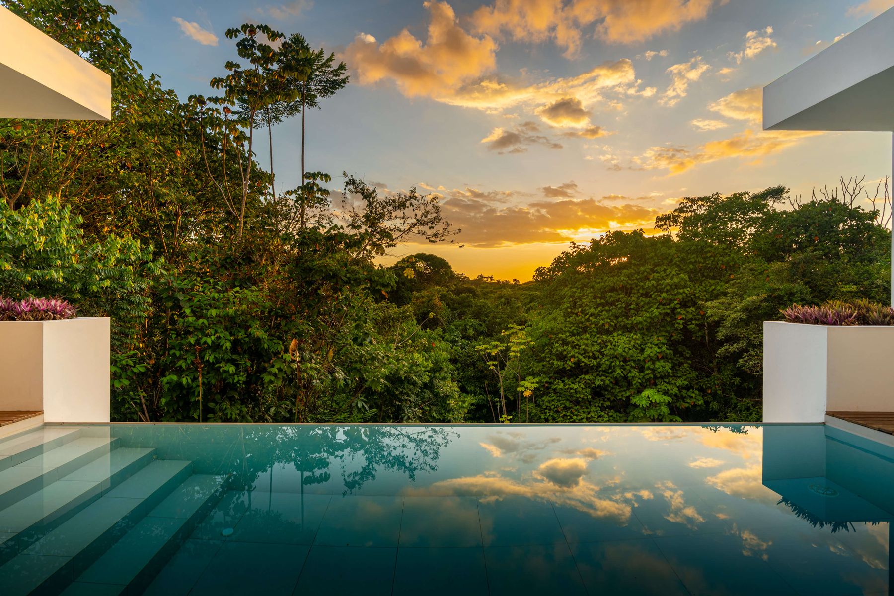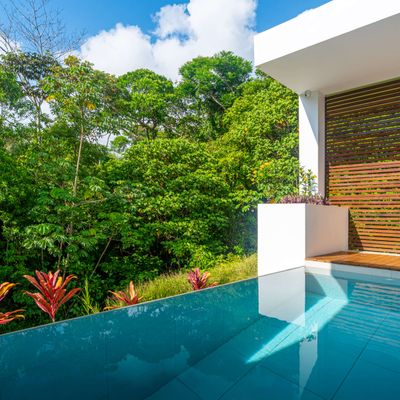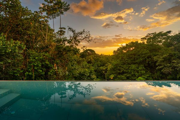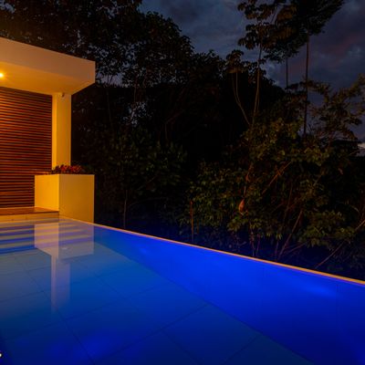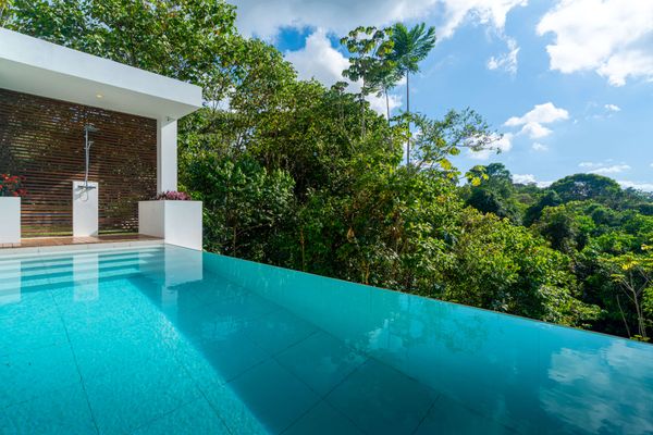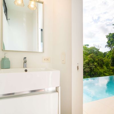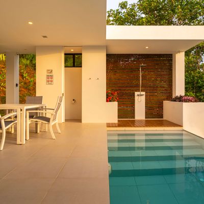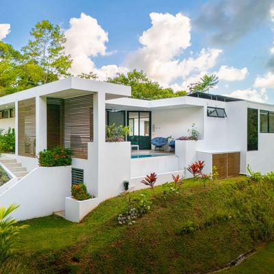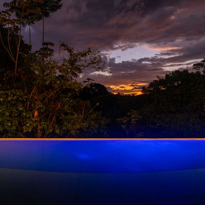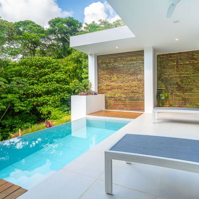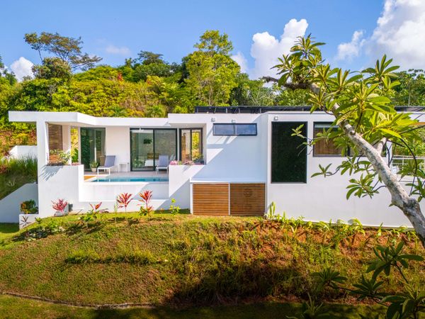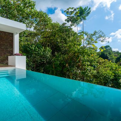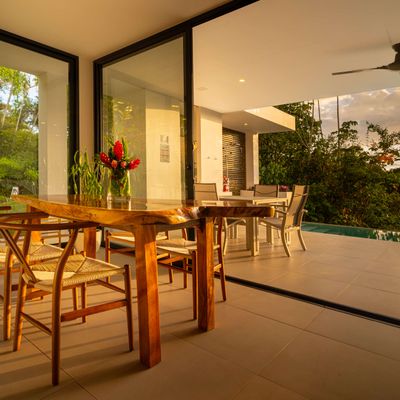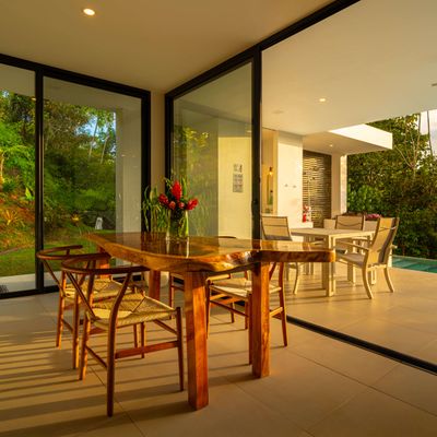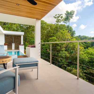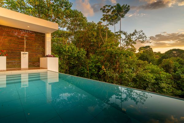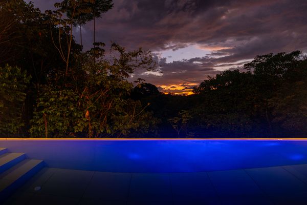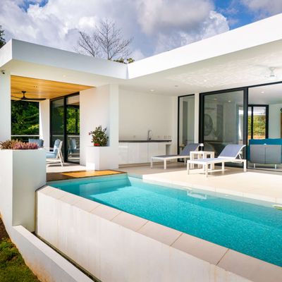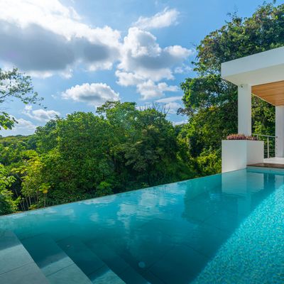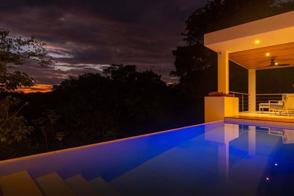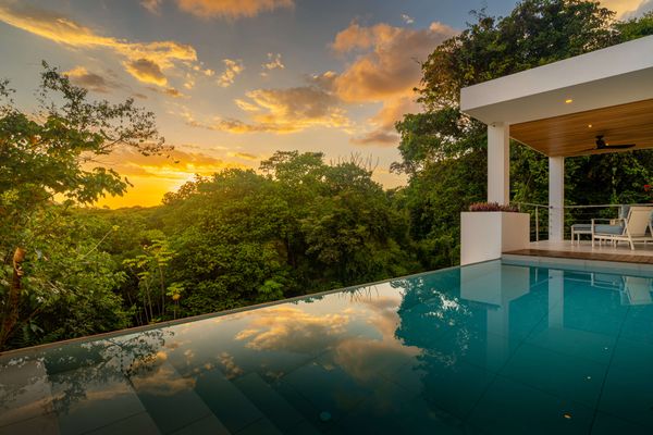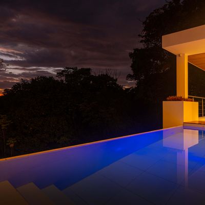 Modern private villa located in the hills of Ojochal, surrounded by lush forest and mountain views. Designed with clean contemporary lines and open indoor–outdoor spaces, the home offers two infinity pools, spacious terraces, and peaceful privacy.