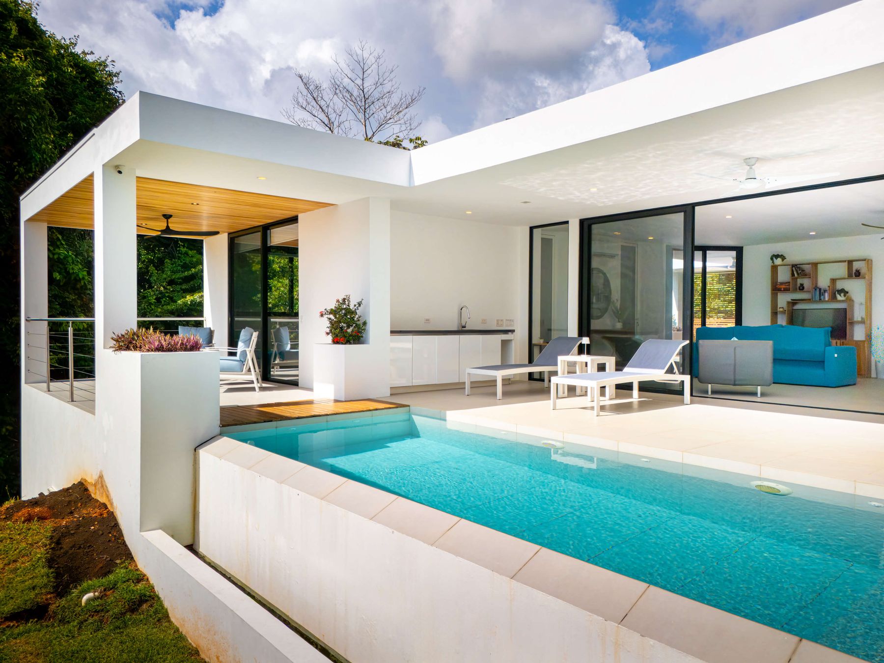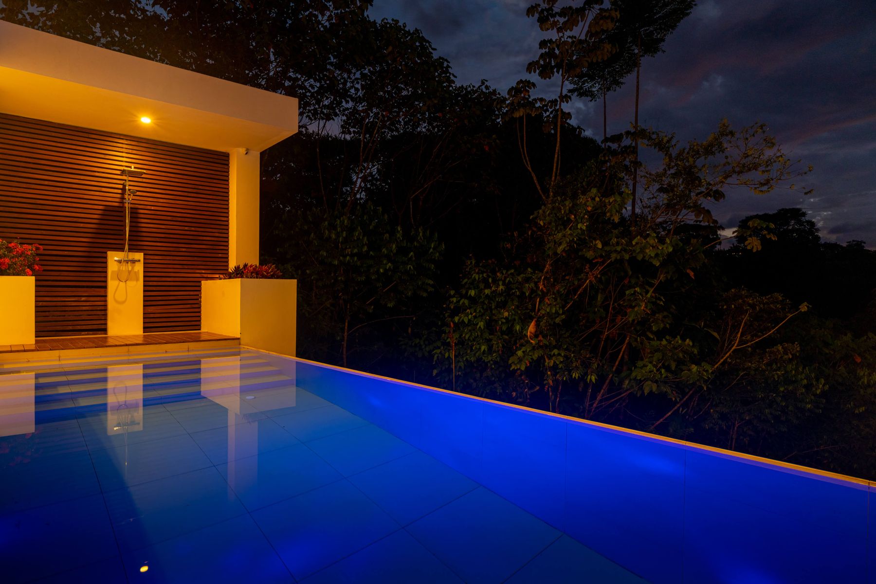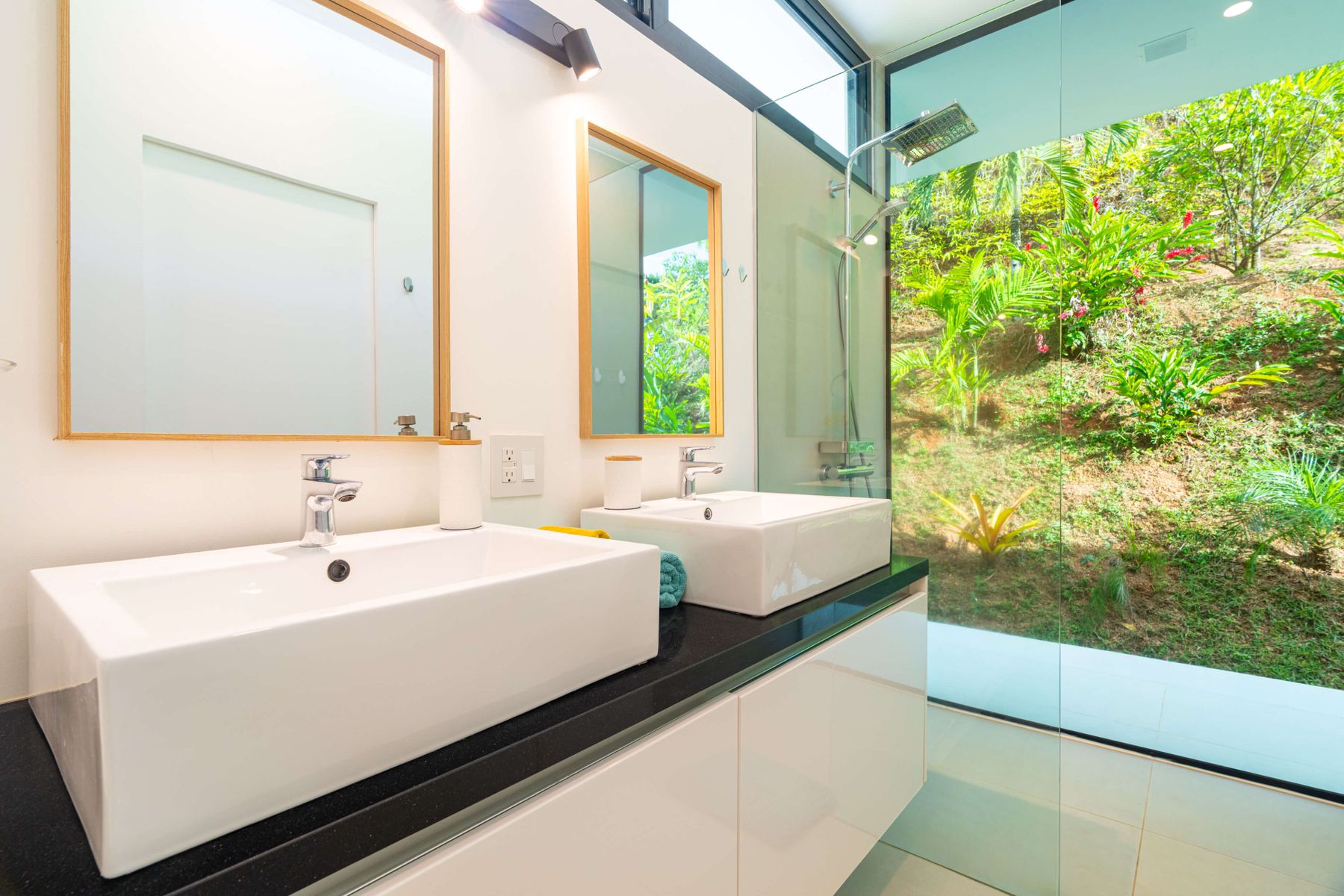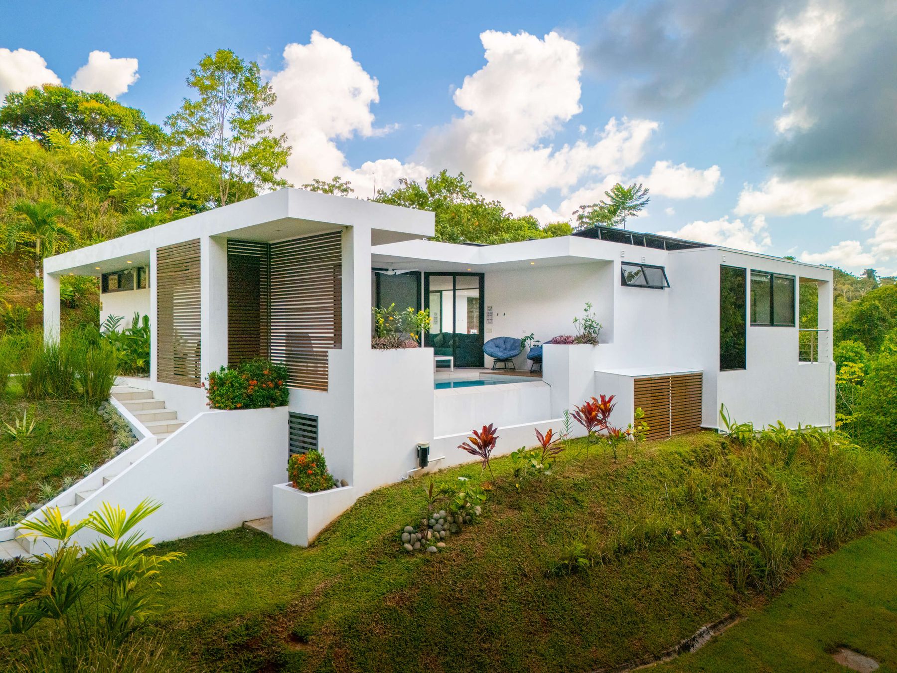 Modern private villa located in the hills of Ojochal, surrounded by lush forest and mountain views. Designed with clean contemporary lines and open indoor–outdoor spaces, the home offers two infinity pools, spacious terraces, and peaceful privacy.