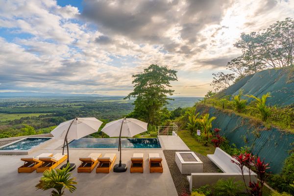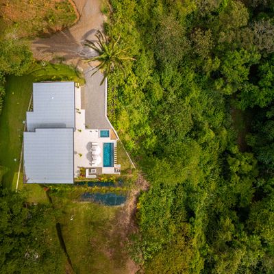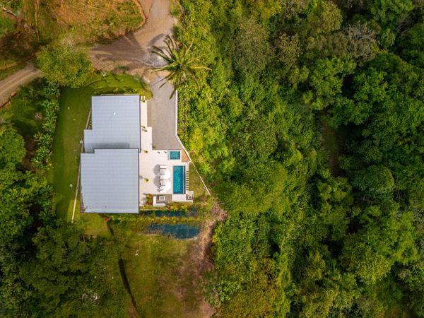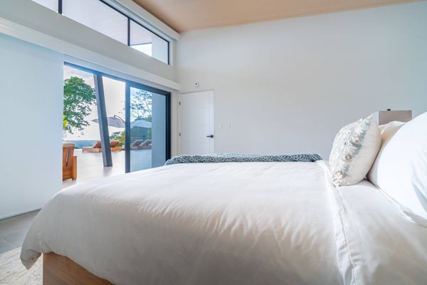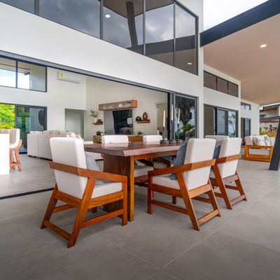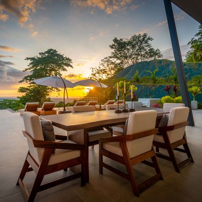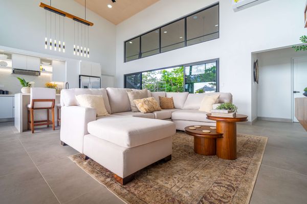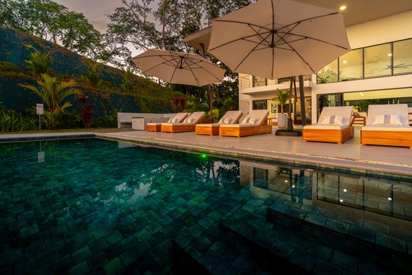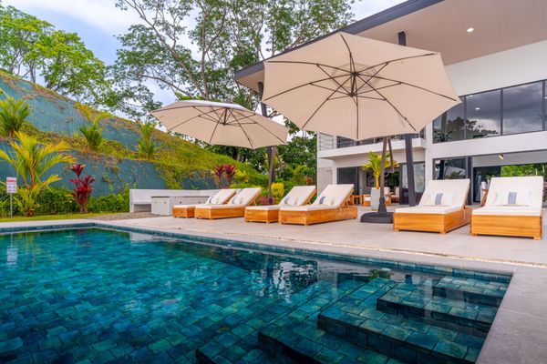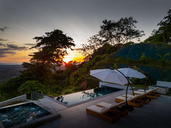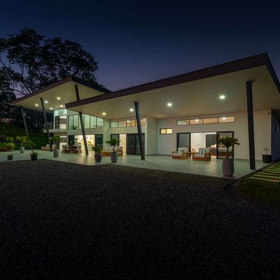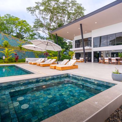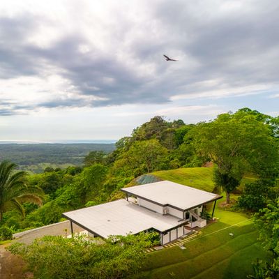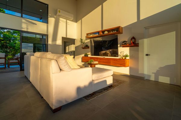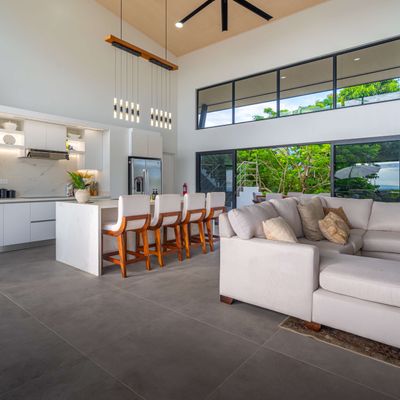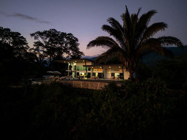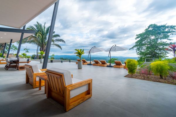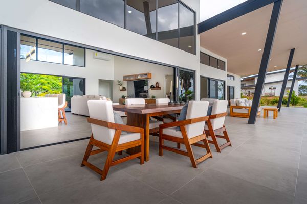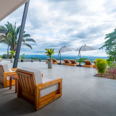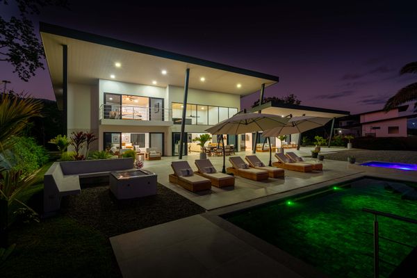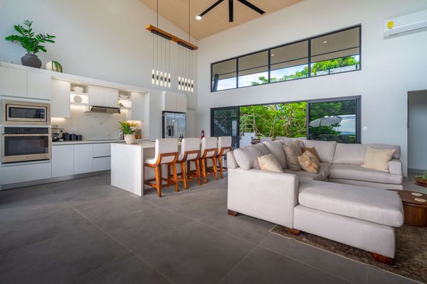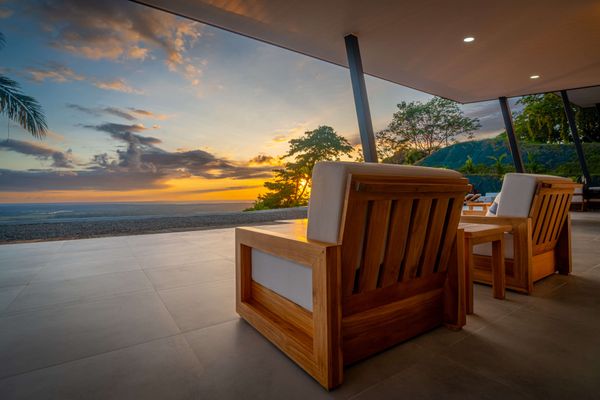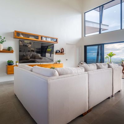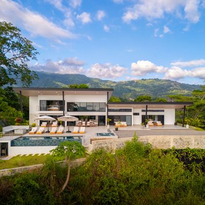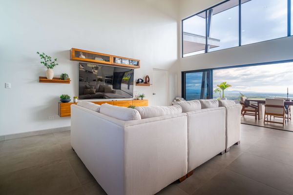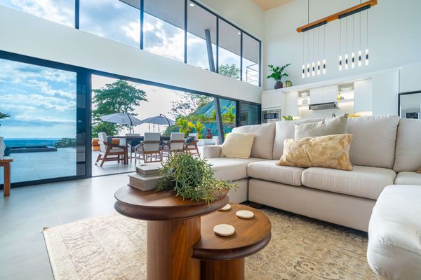 Modern luxury villa sits high in the hills offering sweeping views of rainforest, rolling valleys, and the distant Pacific Ocean. Clean lines, high ceilings, and floor-to-ceiling glass create bright, open spaces that flow directly to the terrace and infinity pool—perfect for relaxing and enjoying unforgettable sunsets.