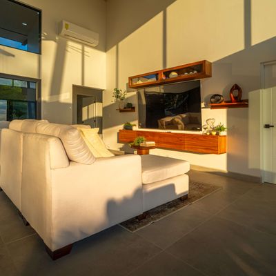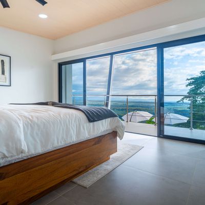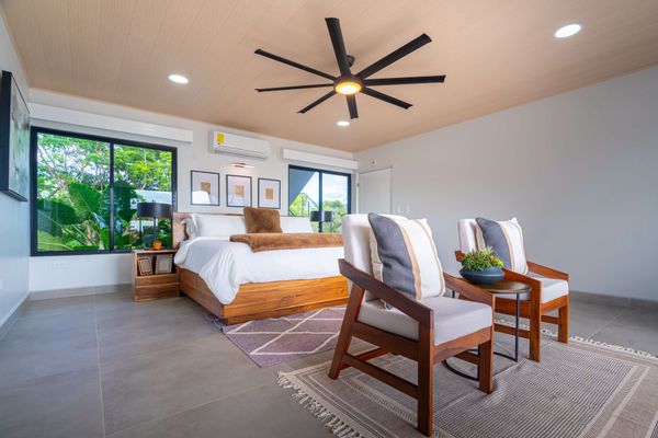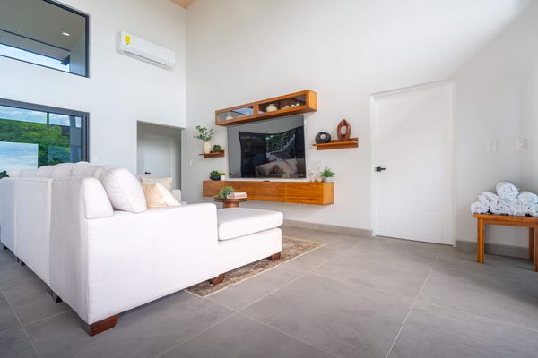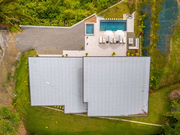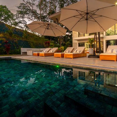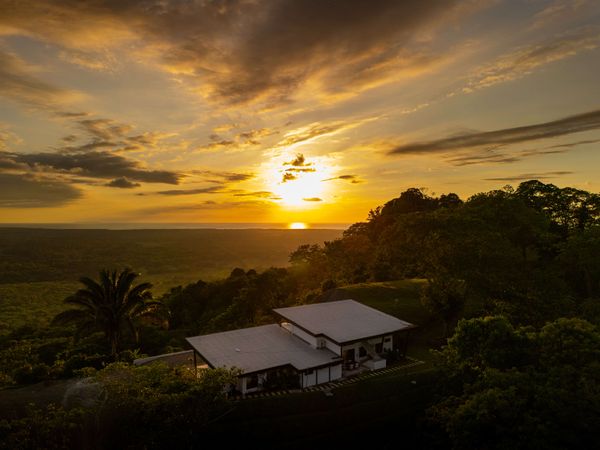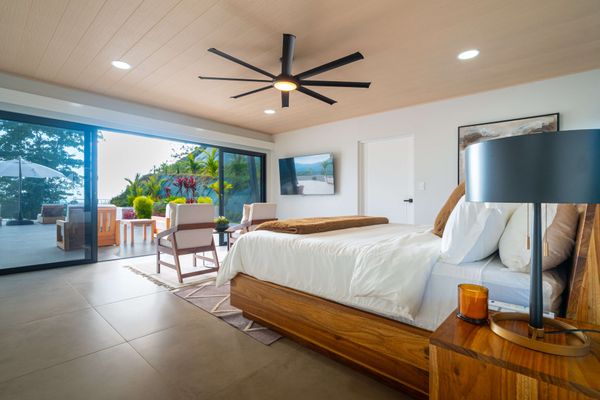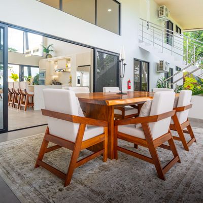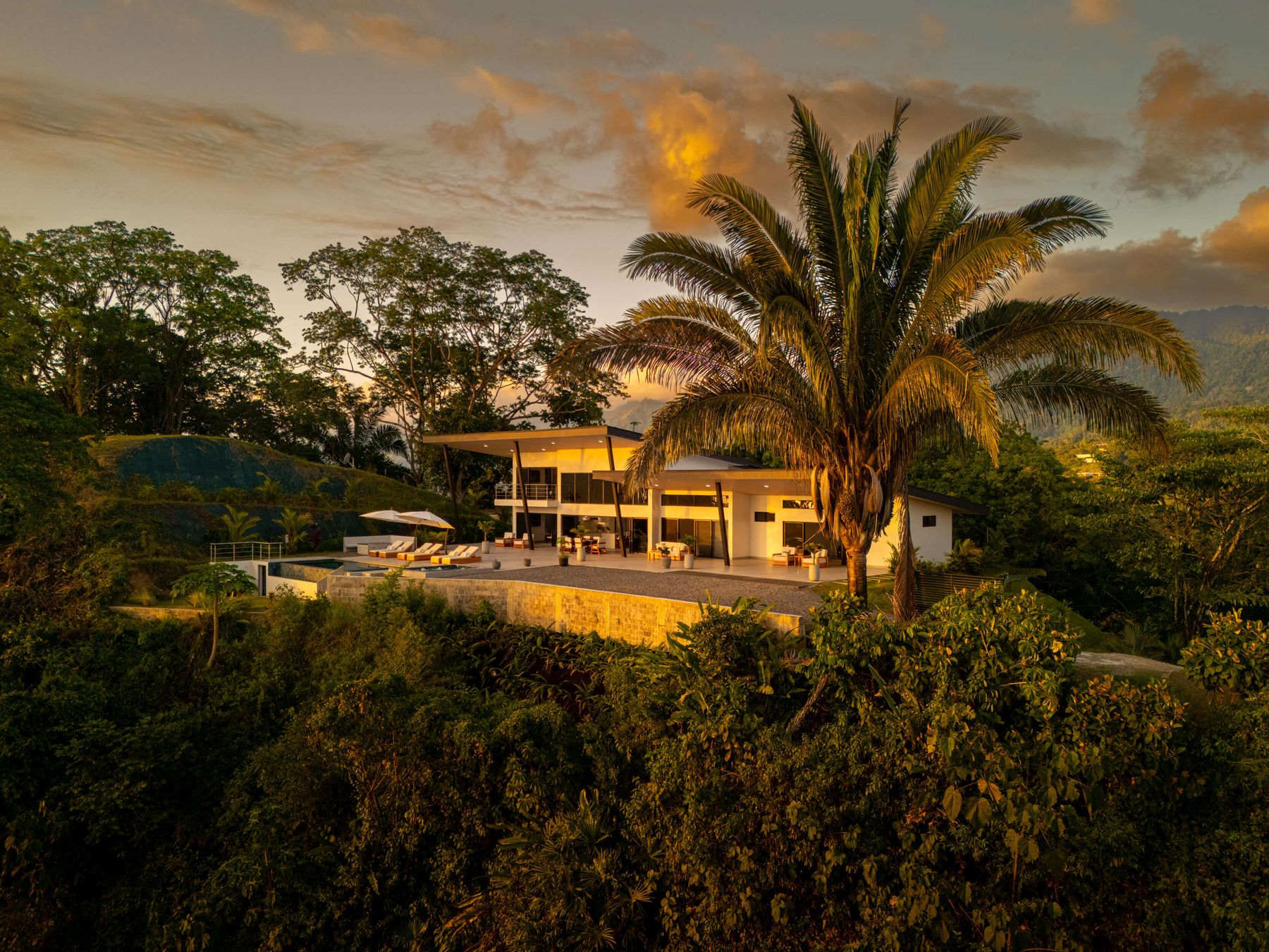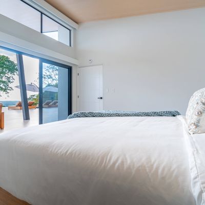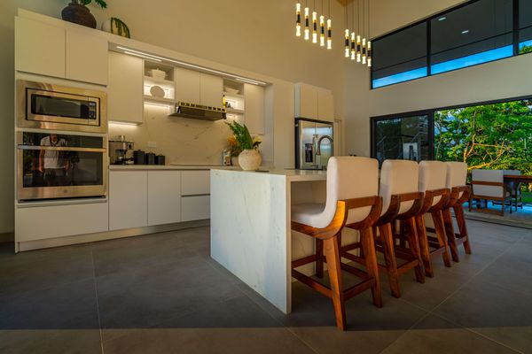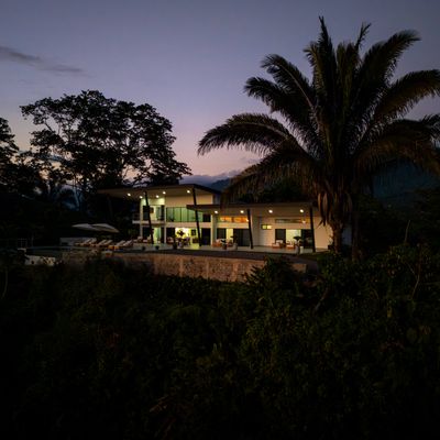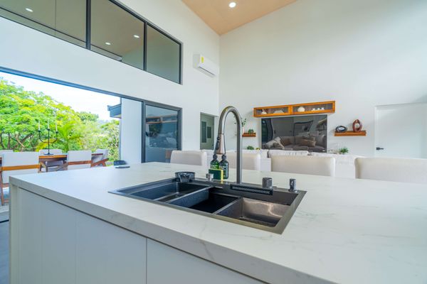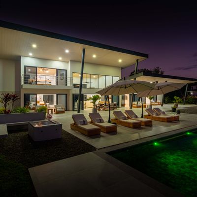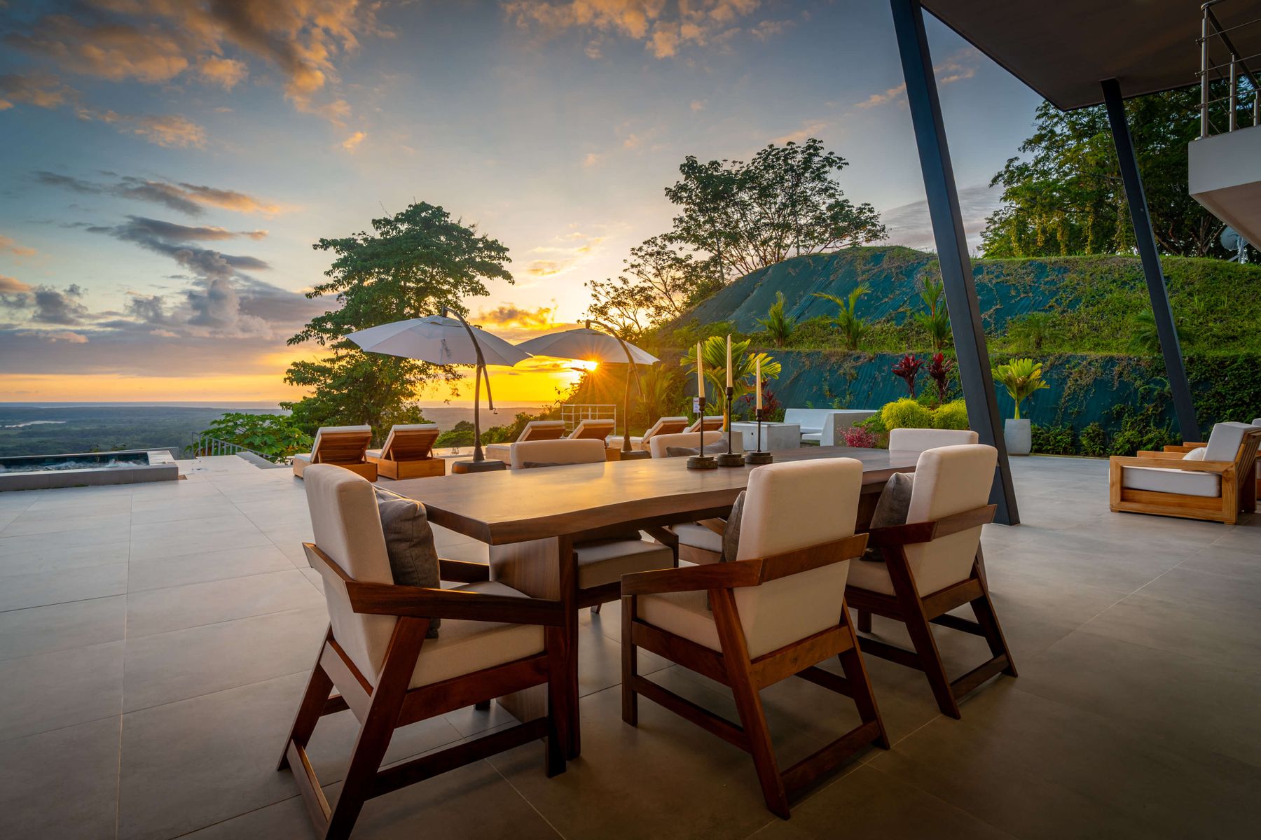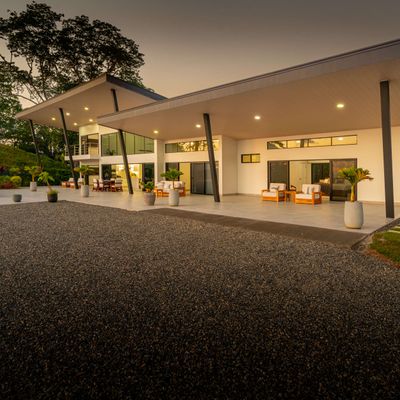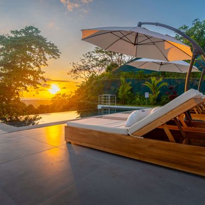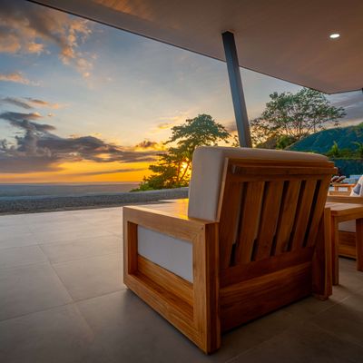Modern luxury villa sits high in the hills offering sweeping views of rainforest, rolling valleys, and the distant Pacific Ocean. Clean lines, high ceilings, and floor-to-ceiling glass create bright, open spaces that flow directly to the terrace and infinity pool—perfect for relaxing and enjoying unforgettable sunsets.