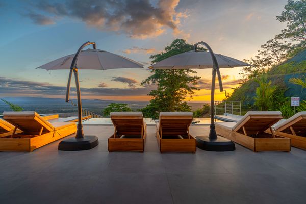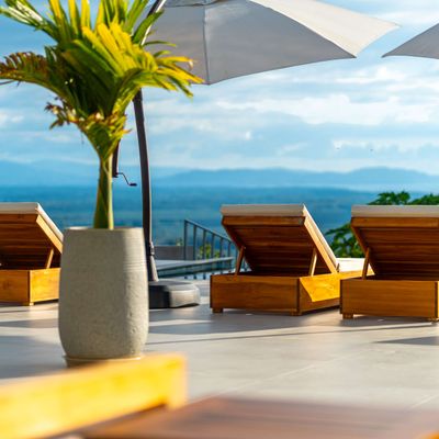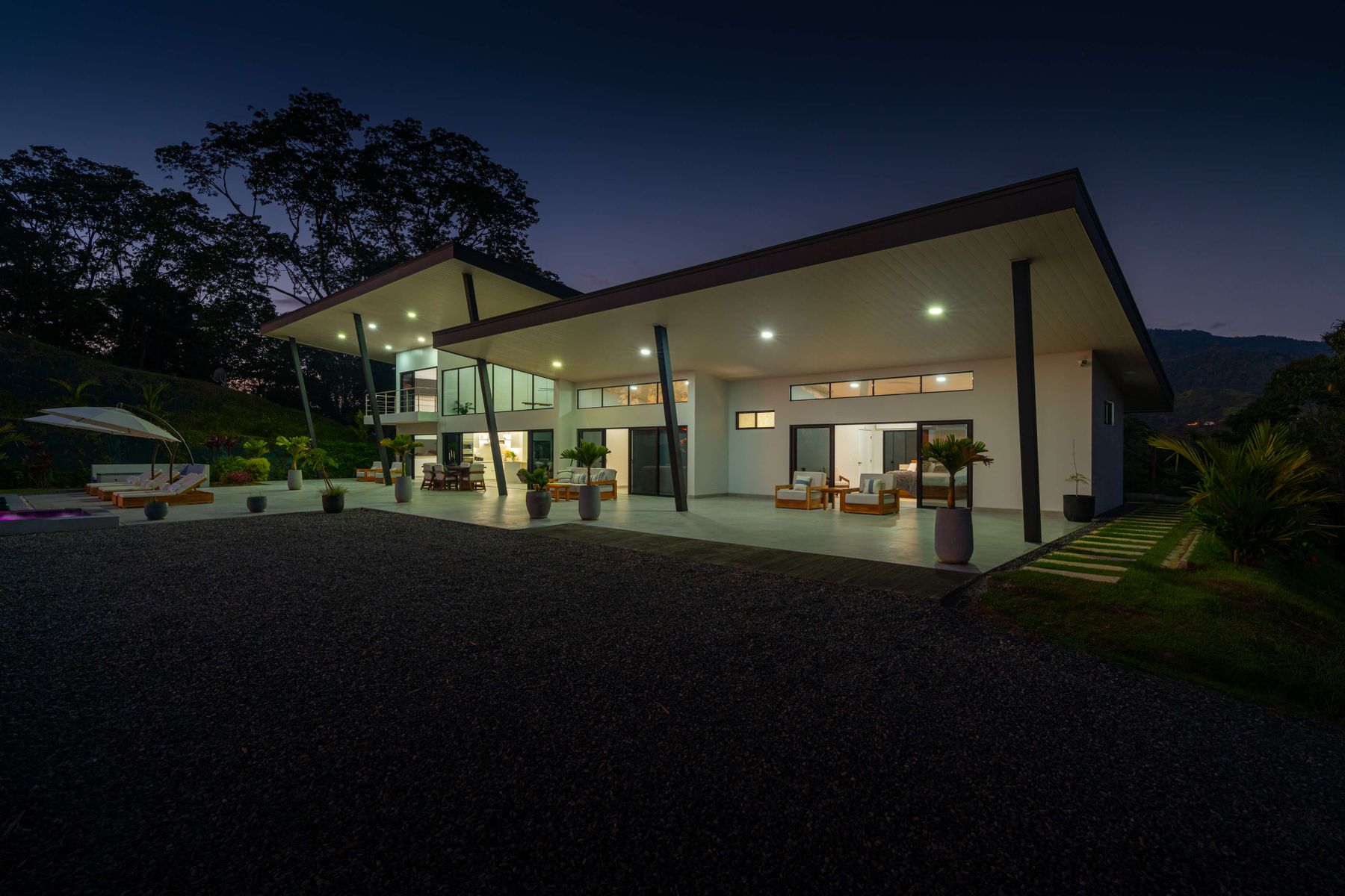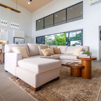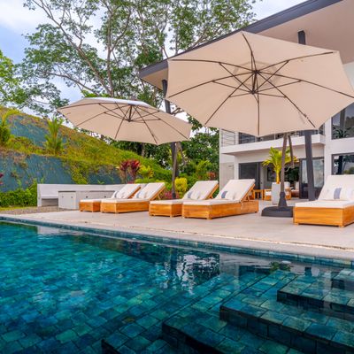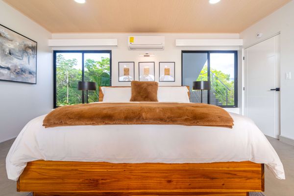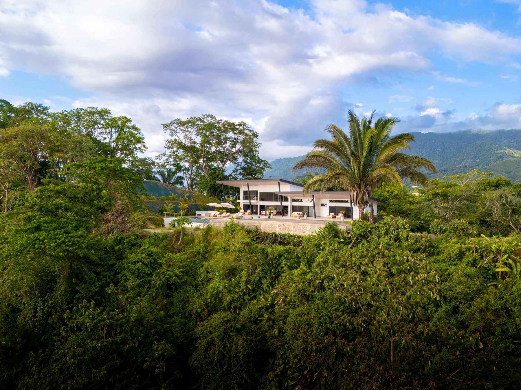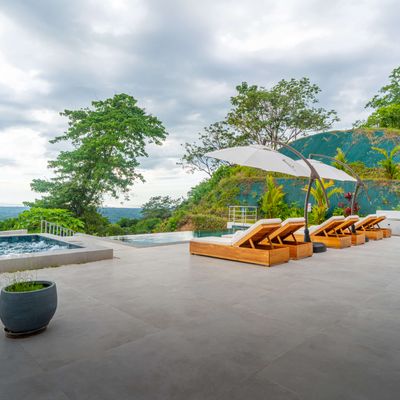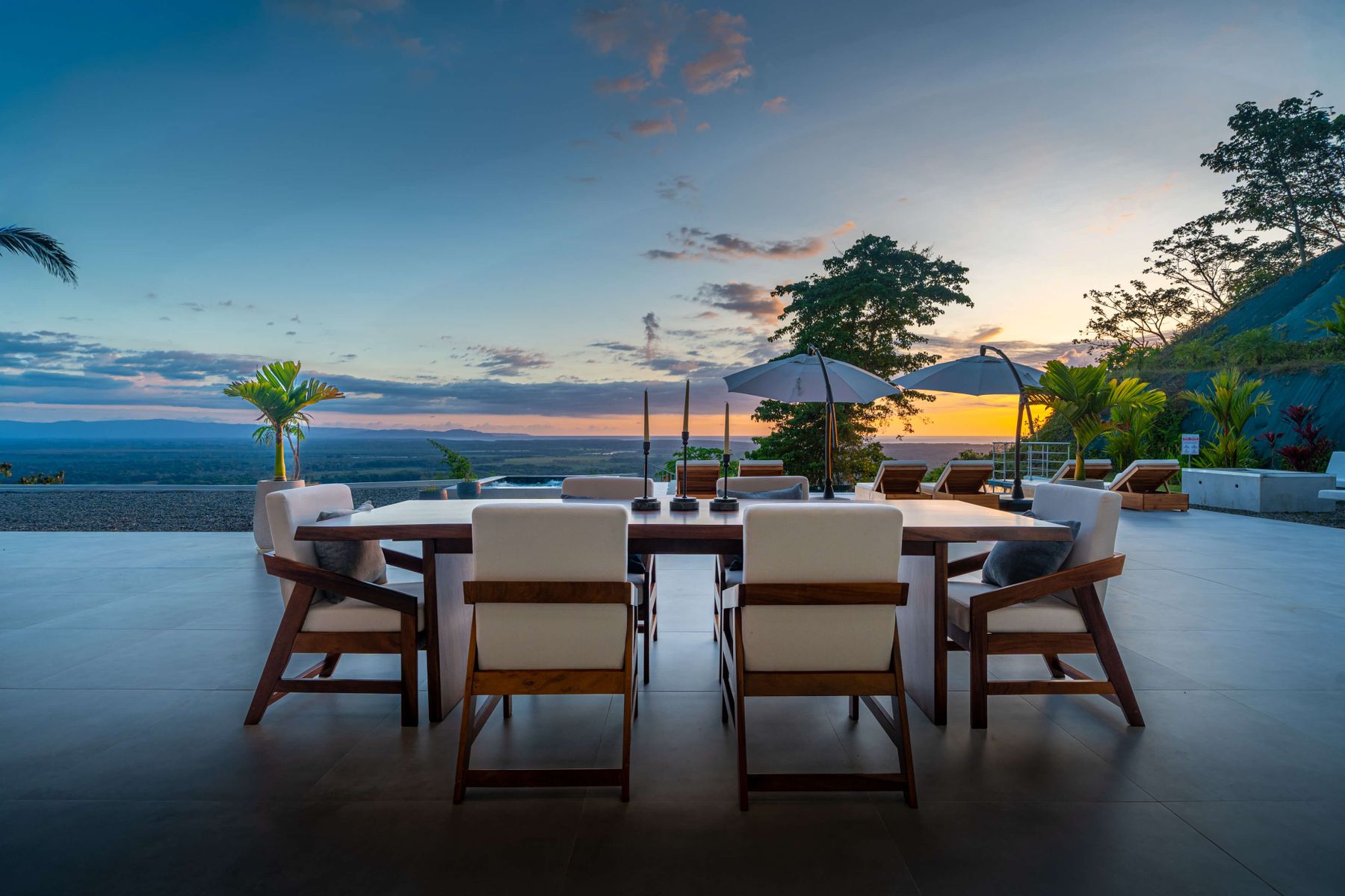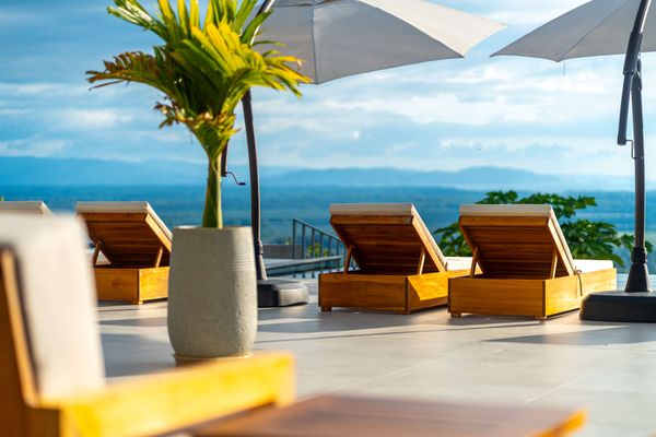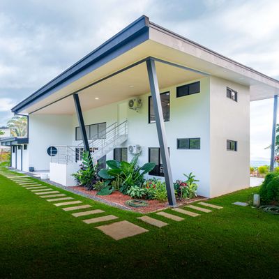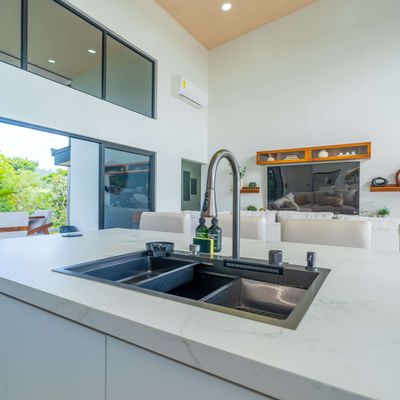 Modern luxury villa sits high in the hills offering sweeping views of rainforest, rolling valleys, and the distant Pacific Ocean. Clean lines, high ceilings, and floor-to-ceiling glass create bright, open spaces that flow directly to the terrace and infinity pool—perfect for relaxing and enjoying unforgettable sunsets.