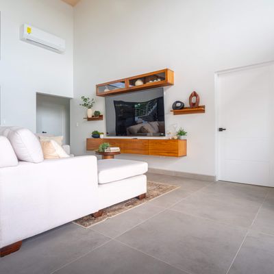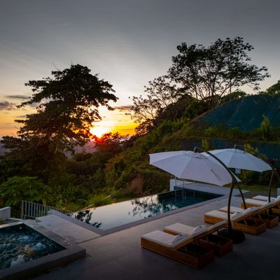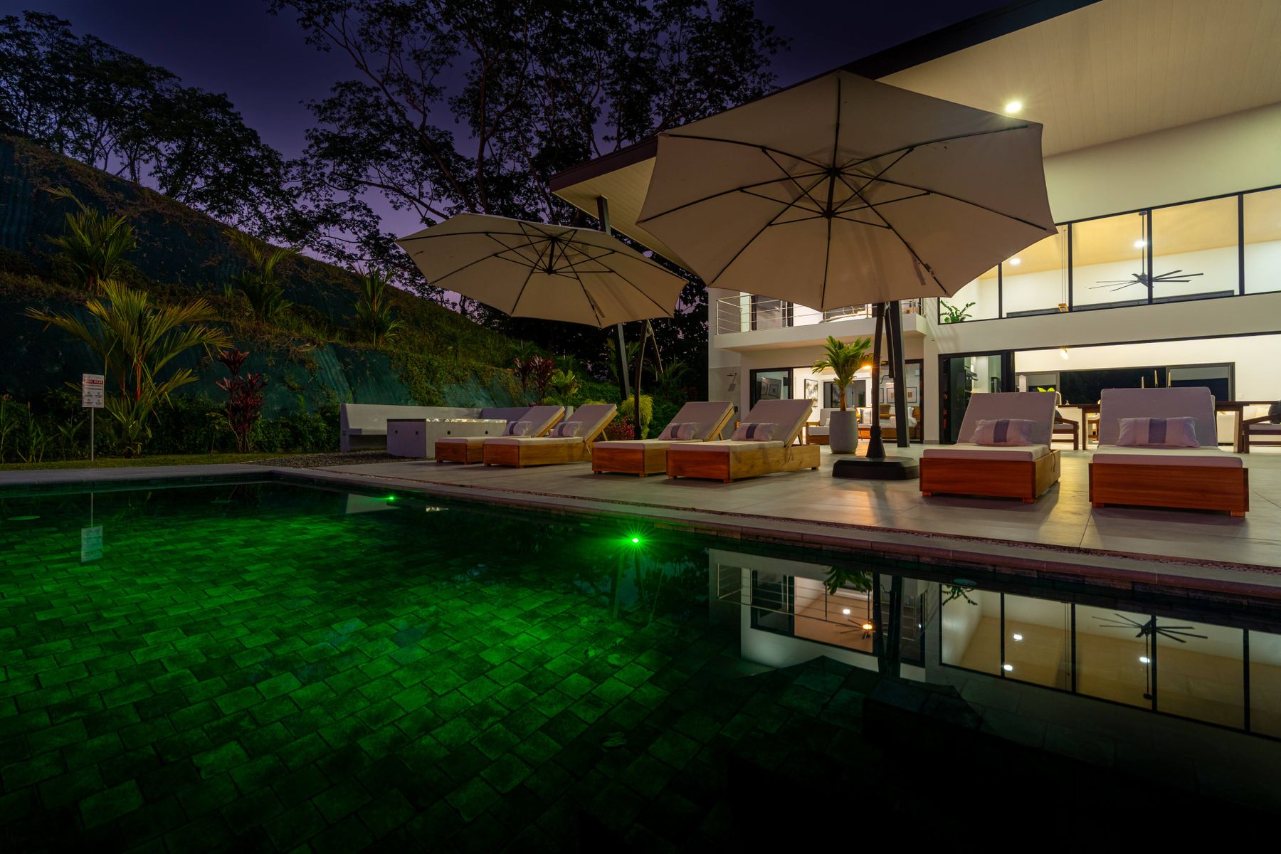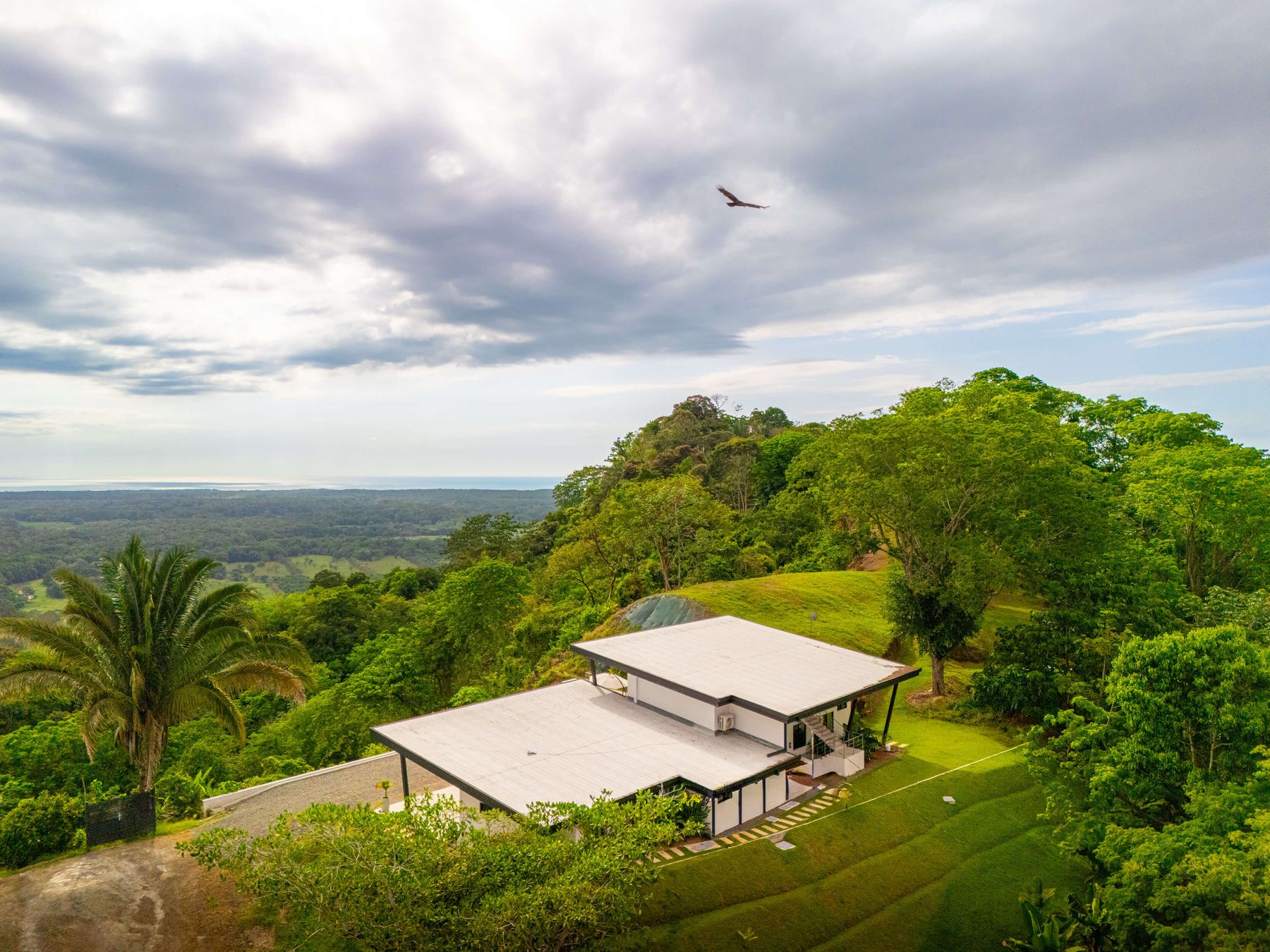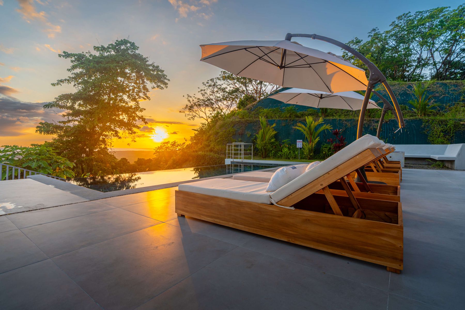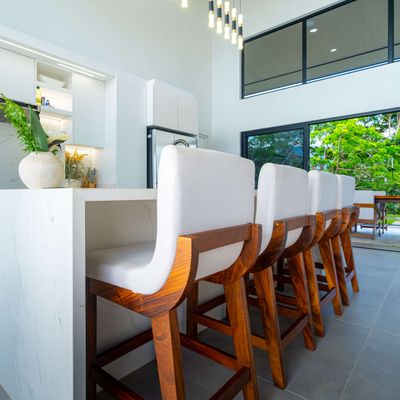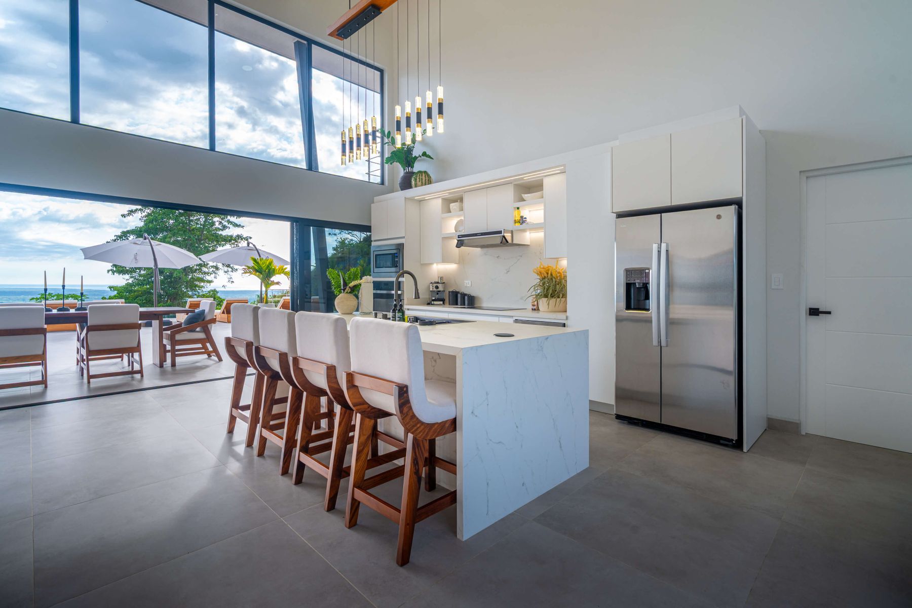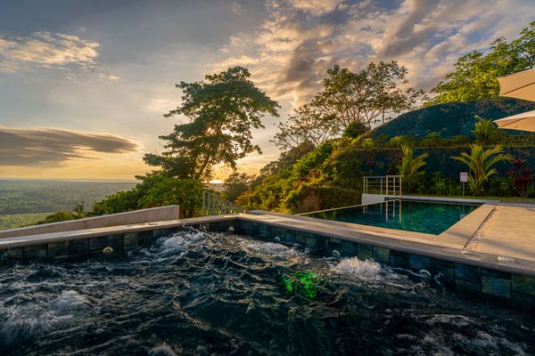 Modern luxury villa sits high in the hills offering sweeping views of rainforest, rolling valleys, and the distant Pacific Ocean. Clean lines, high ceilings, and floor-to-ceiling glass create bright, open spaces that flow directly to the terrace and infinity pool—perfect for relaxing and enjoying unforgettable sunsets.