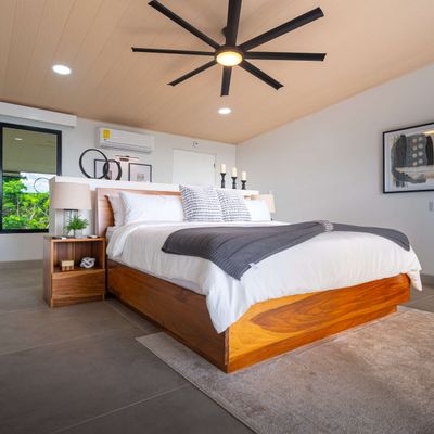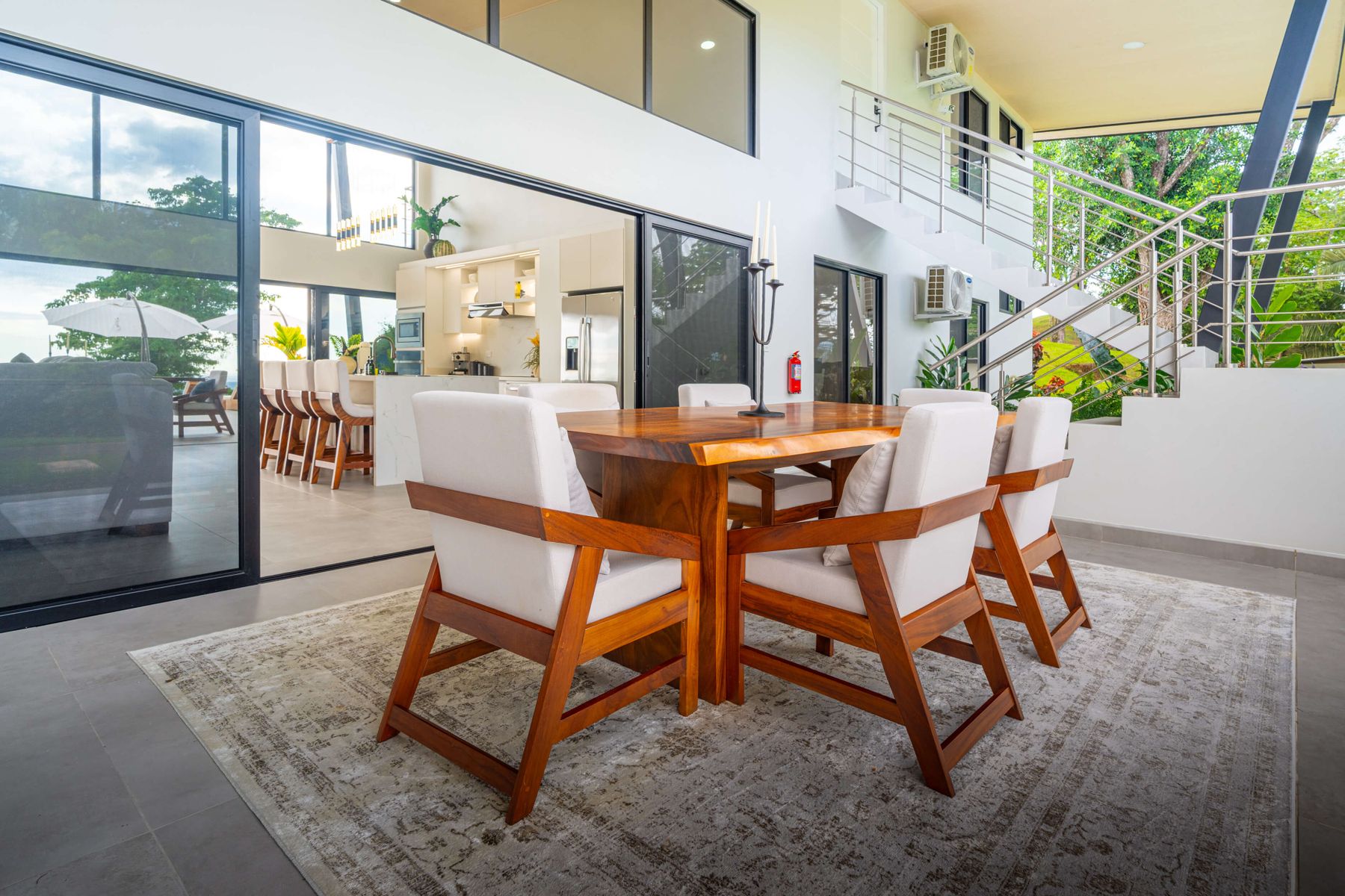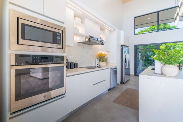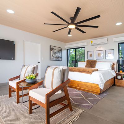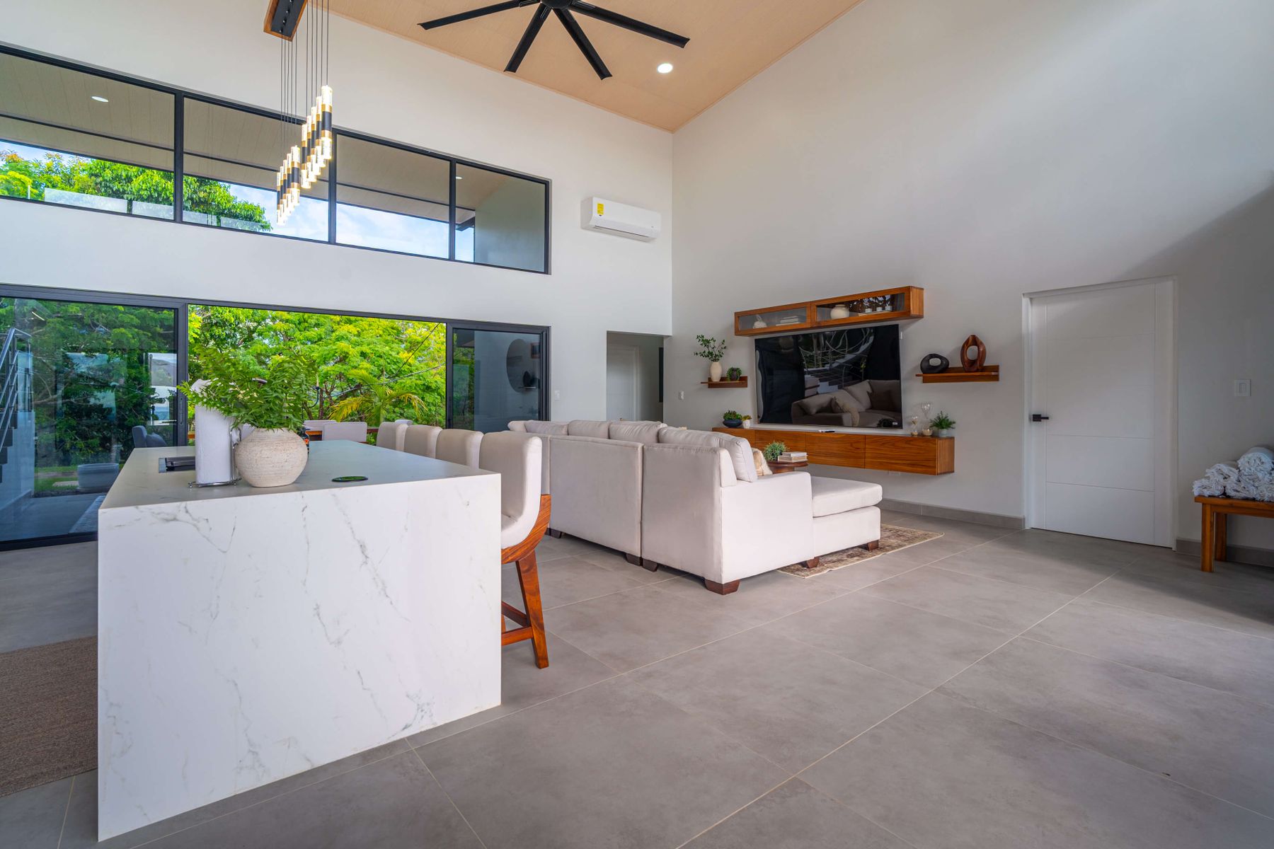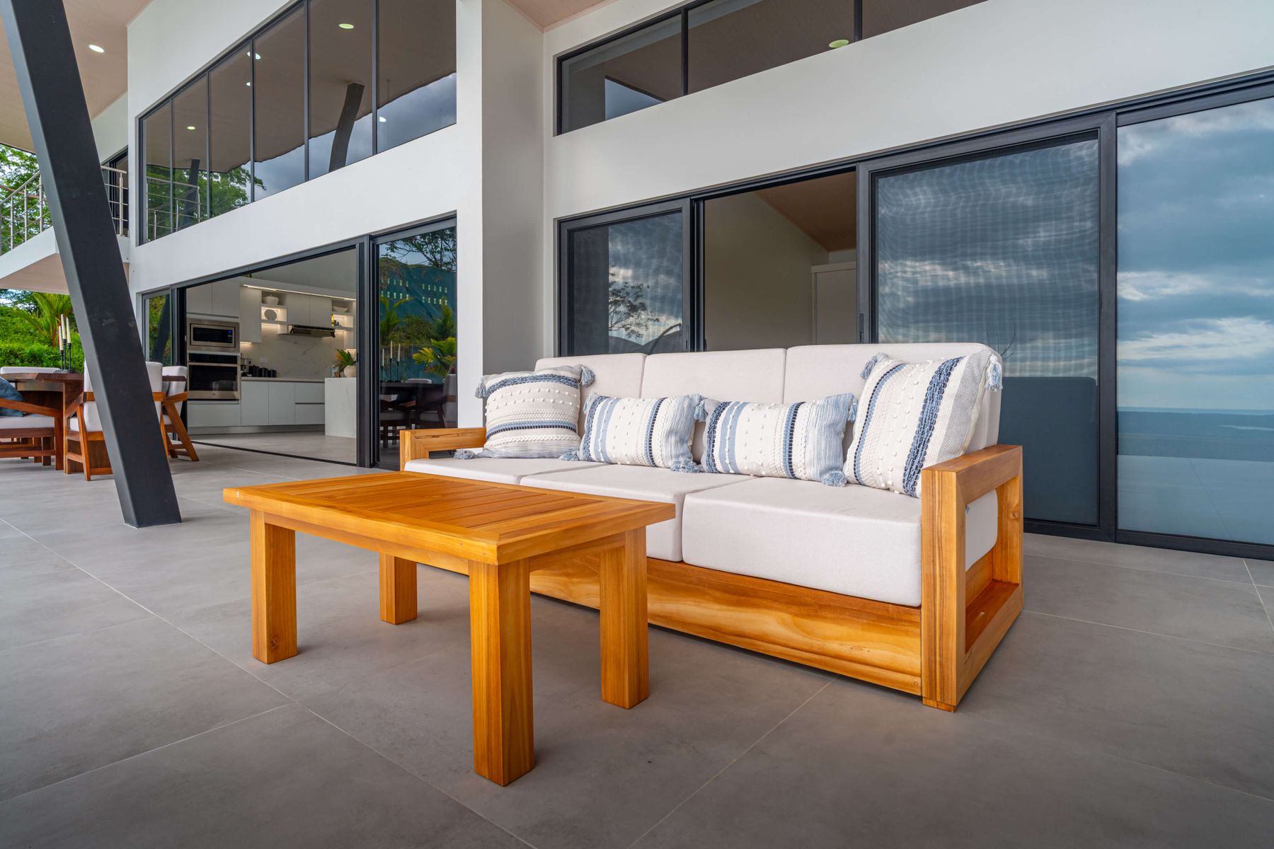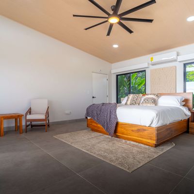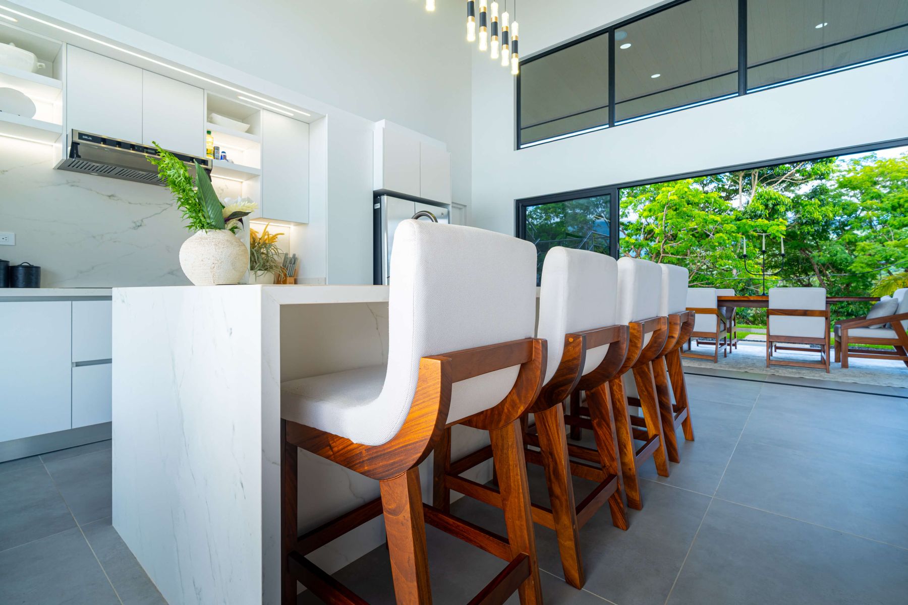 Modern luxury villa sits high in the hills offering sweeping views of rainforest, rolling valleys, and the distant Pacific Ocean. Clean lines, high ceilings, and floor-to-ceiling glass create bright, open spaces that flow directly to the terrace and infinity pool—perfect for relaxing and enjoying unforgettable sunsets.