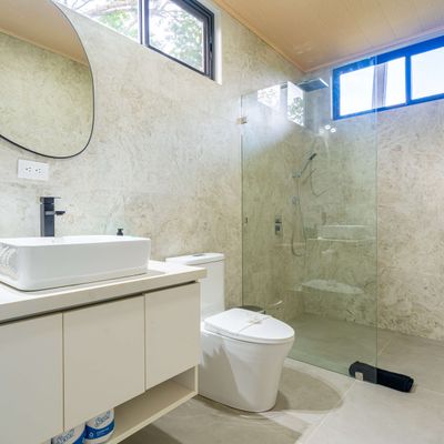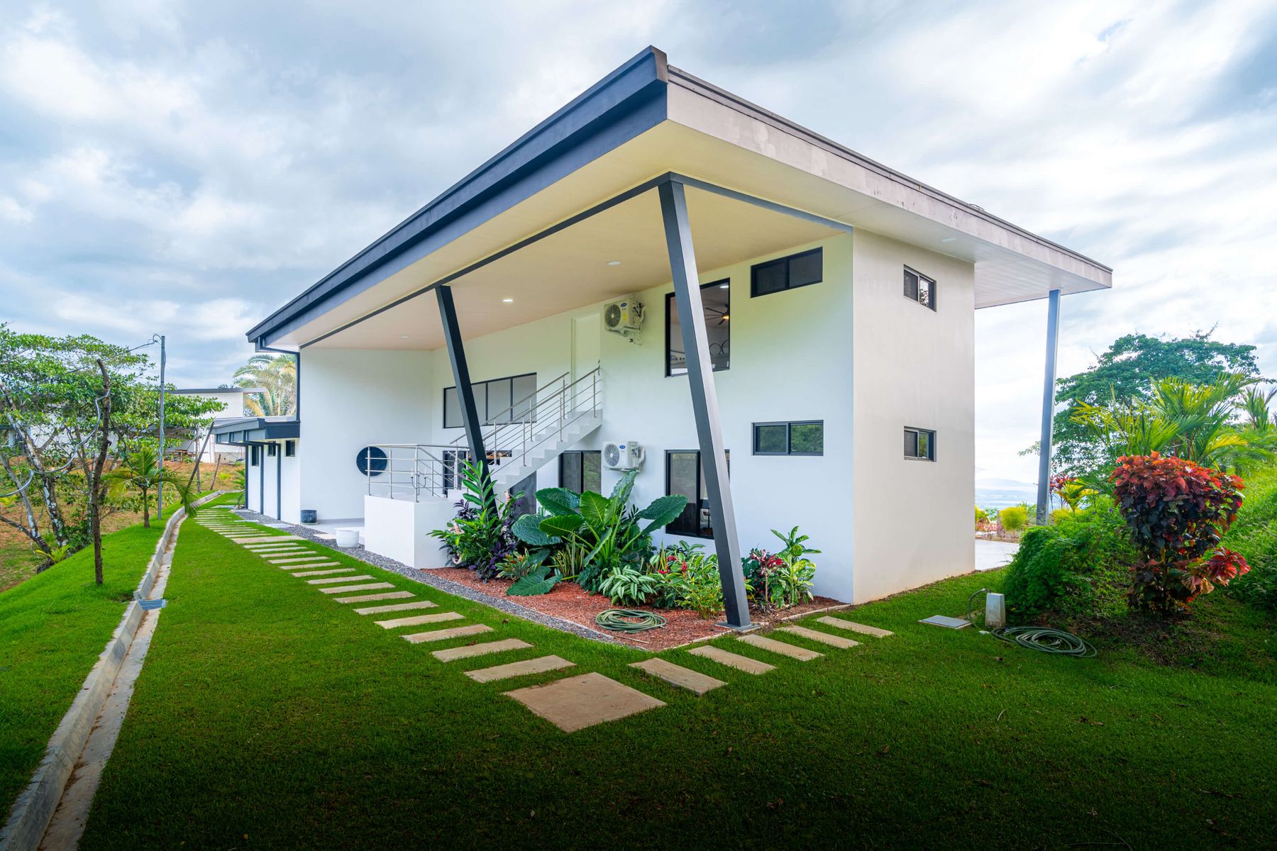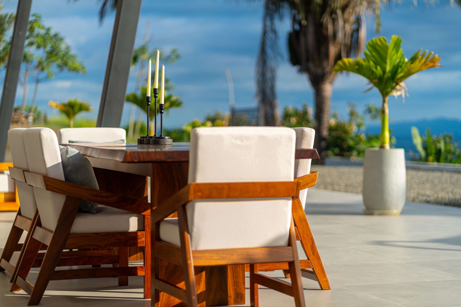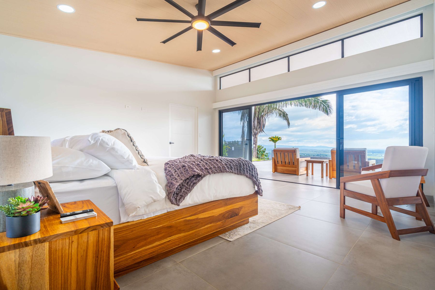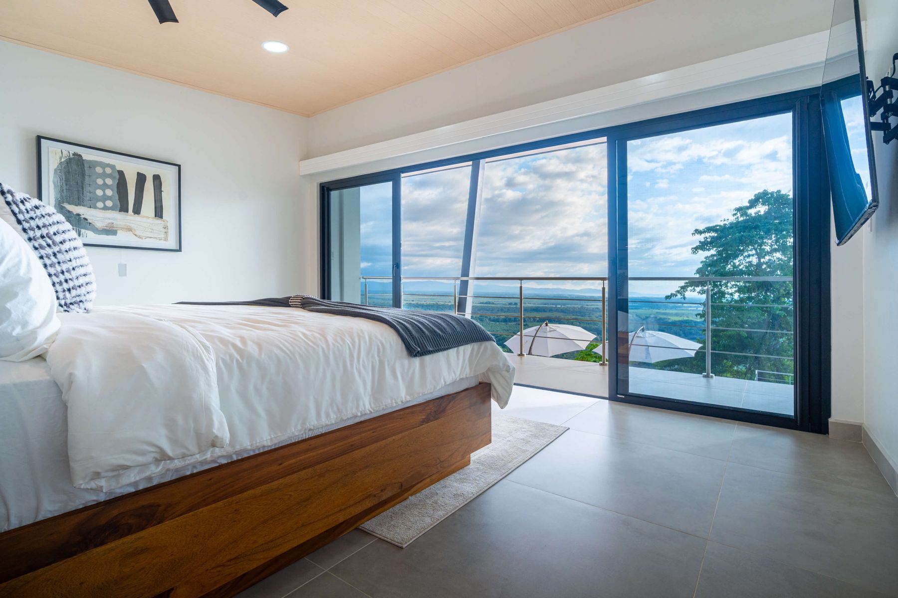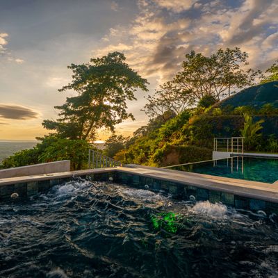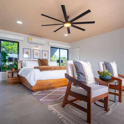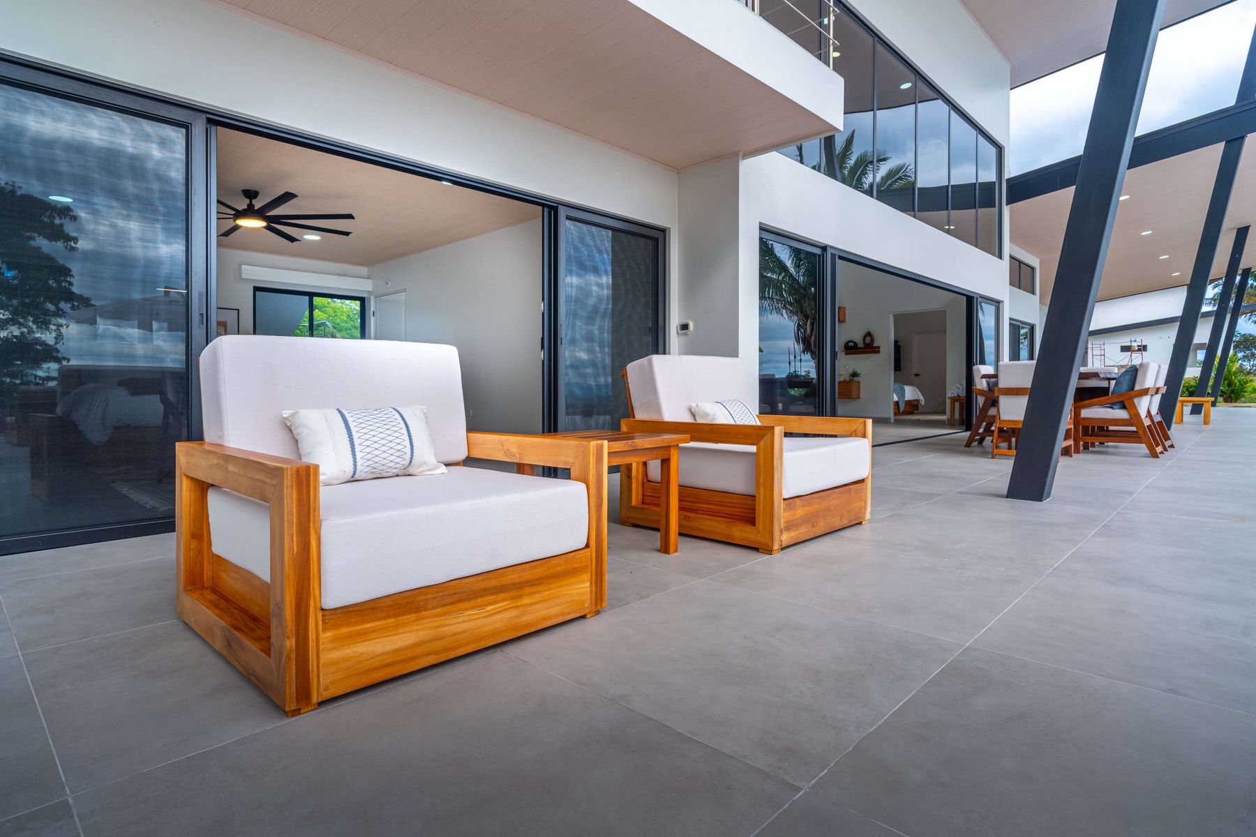 Modern luxury villa sits high in the hills offering sweeping views of rainforest, rolling valleys, and the distant Pacific Ocean. Clean lines, high ceilings, and floor-to-ceiling glass create bright, open spaces that flow directly to the terrace and infinity pool—perfect for relaxing and enjoying unforgettable sunsets.