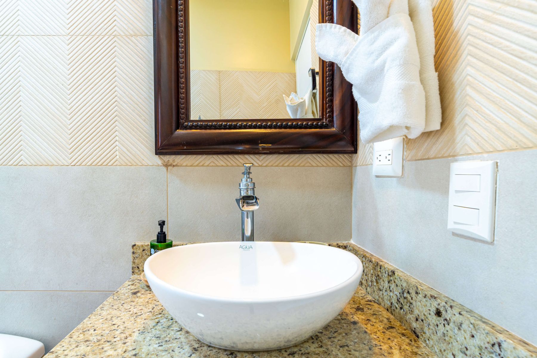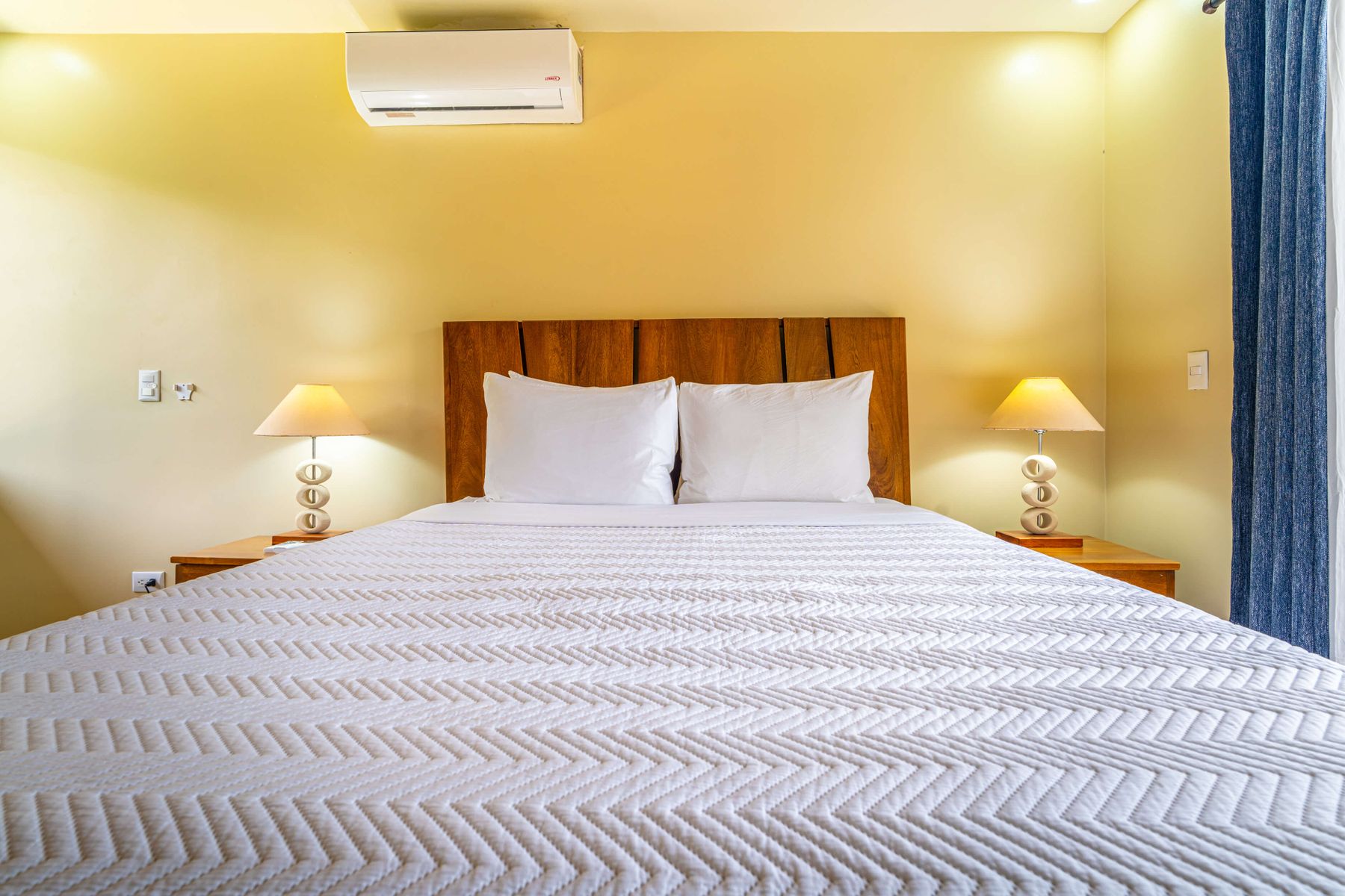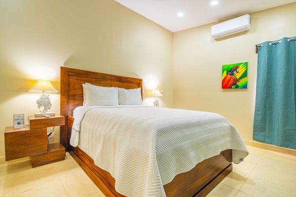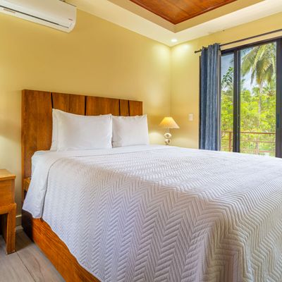 1) King-sized bed, en-suite bathroom, air conditioning.